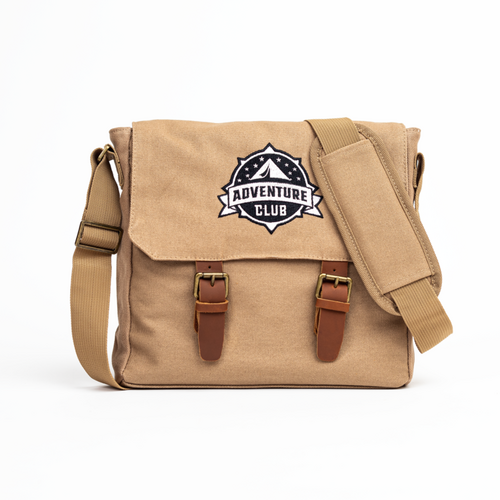 The satchel is for storing the Kids Book, a standard-size Bible, and to display the pins the kids earn. The satchel can be zipped closed at the top and has a zipper pocket inside.