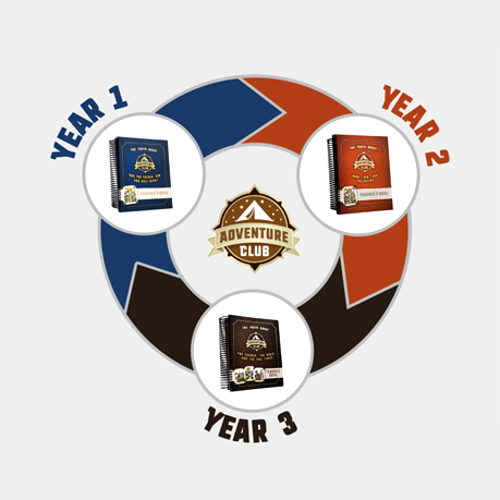 Every Sunday night, adventurers learn the same lesson in a way that is appropriate for their age group . A three-year rotation of topics allows each child to be exposed to theological concepts at progressively deeper levels as they move through Trackers, Scouts, and Trailblazers. The unified curriculum also enables families to discuss one topic together each week, reinforcing the lesson that children have learned in Adventure Club. Verses related to the lesson are provided for the children to memorize during the week to help them remember what the Scripture teaches about the week’s topic.